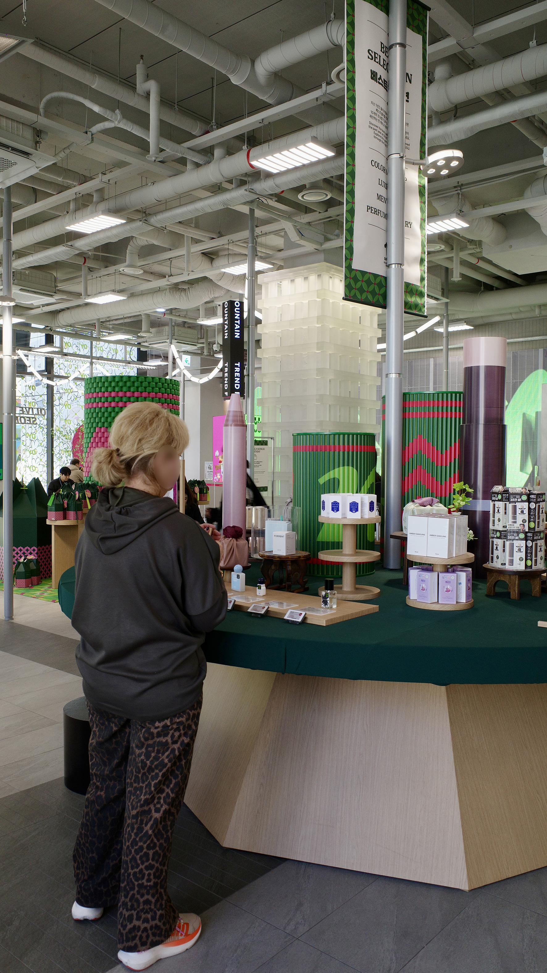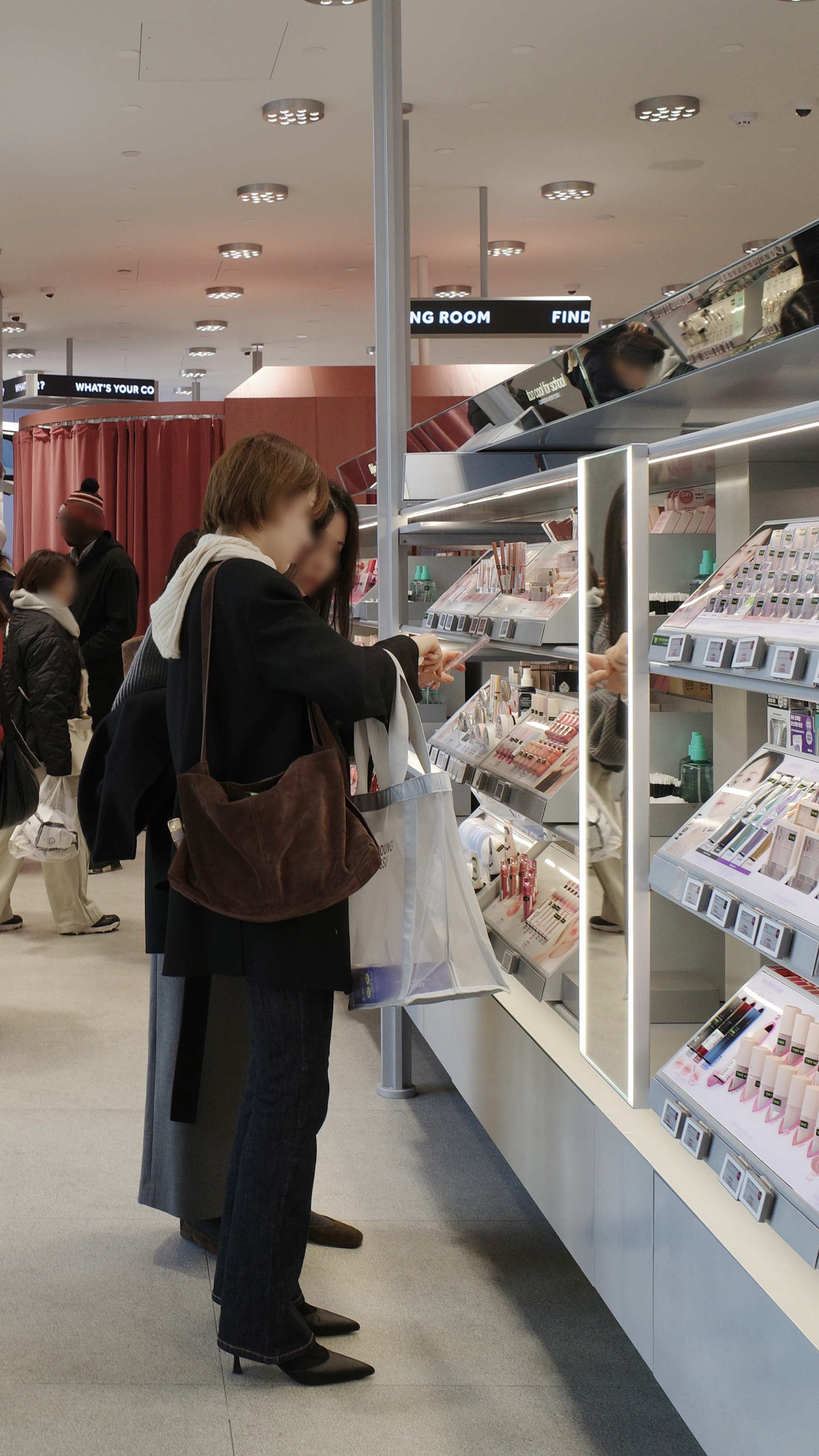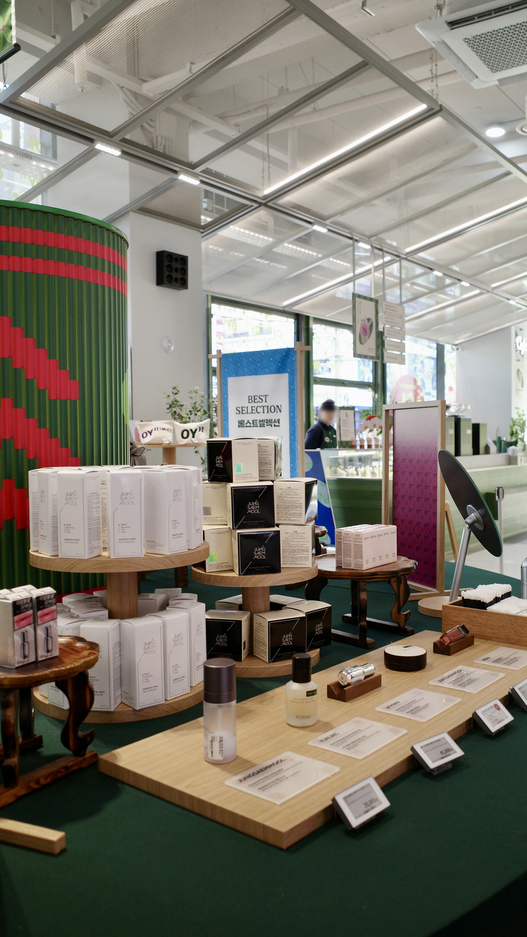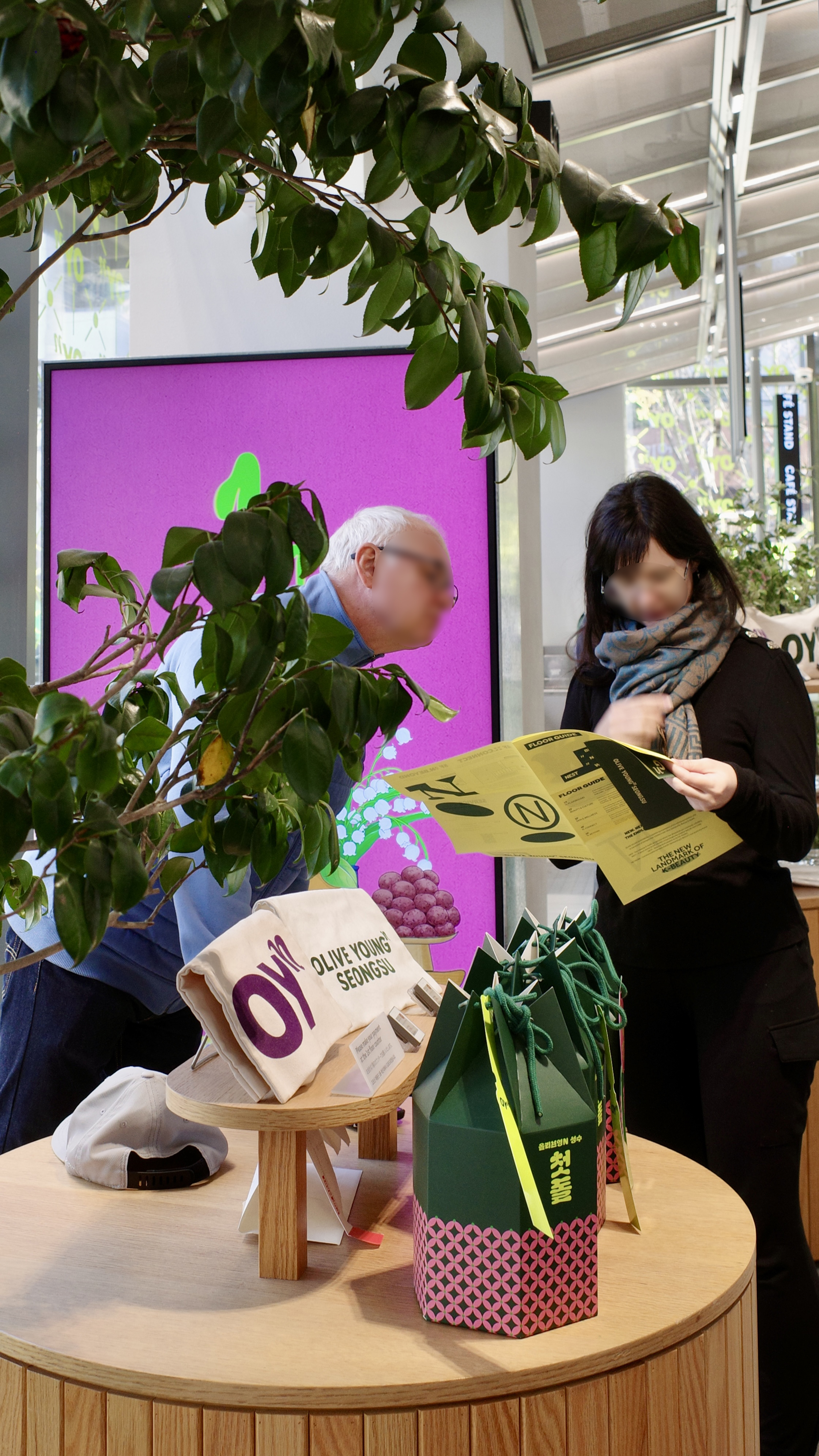 이 전략은 외국인 방문객 비율이 높은 올리브영N 성수의 특성을 정확히 짚어낸 연출이기도 합니다. 한국적 요소를 단순히 보여주는 데 그치지 않고, 브랜드 경험의 내러티브 속에 자연스럽게 스며들도록 설계해 K-뷰티 매장을 넘어 ‘한국 문화의 터치포인트’로 확장한 것이죠. 외국인 고객은 제품을 구매하기 위해 들렀다가 의외의 재미를 발견하고, 한국적인 미감·색채·디테일을 공간을 통해 체험하게 됩니다. 이는 리테일 공간이 글로벌 고객에게 ‘문화 콘텐츠’로 작동할 수 있음을 증명하는 지점이기도 해요.
